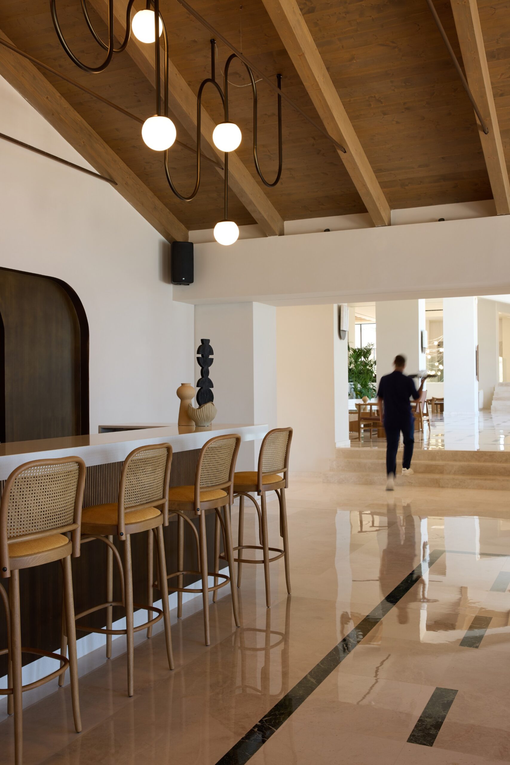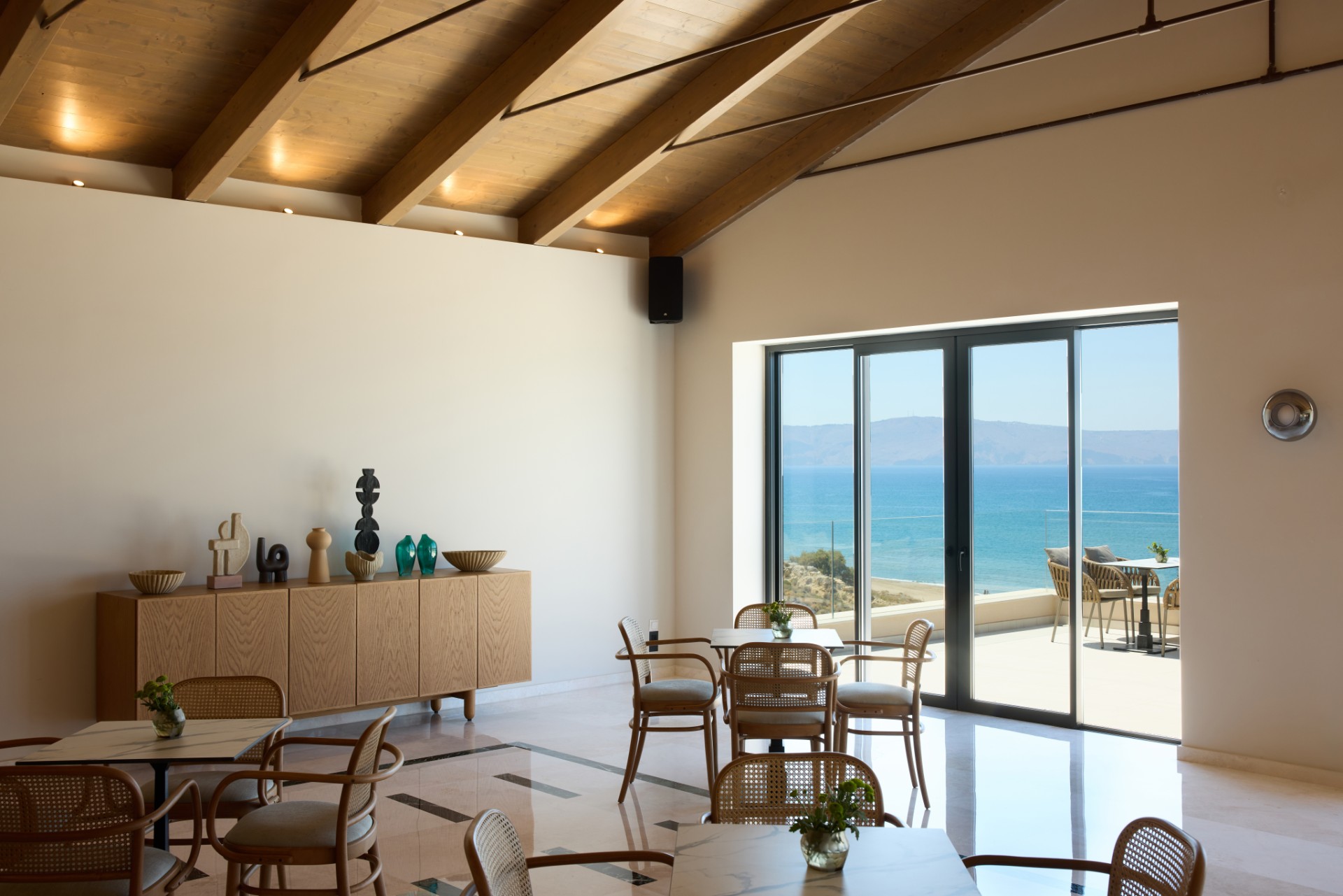 From sunrise to twilight, the boundaries between indoors and the infinite horizon dissolve. An awe-inspiring sublime lobby bar that frames an uninterrupted outlook of the Cretan Sea, where the blue matures with the passing hours – soft and ethereal in the morning, vibrant and golden by noon, deep and enigmatic as night descends.